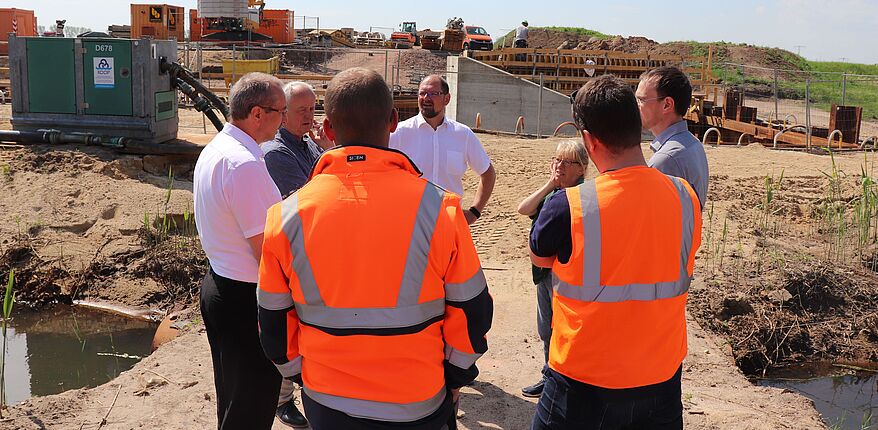 Davon konnten sich für das Land Sachsen-Anhalt als Bauherr Burkhard Henning, Landesbetrieb für Hochwasserschutz LHW, Landrat Martin Stichnoth, Bürgermeister Thomas Schmette (Verbandsgemeinde Elbe-Heide) und Ortsbürgermeisterin (Loitsche-Heinrichsberg) Bettina Roggisch in diesen Tagen ein eigenes Bild machen. Man traf sich zu einem informatorischen Termin am wachsenden Ohredeich auf der Baustelle bei Loitsche.